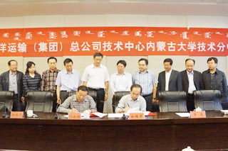 最后,內(nèi)蒙古大學(xué)副校長班士良教授和中遠(yuǎn)集團(tuán)研發(fā)中心主任白培軍就中遠(yuǎn)集團(tuán)研發(fā)中心內(nèi)蒙古大學(xué)分中心成立簽訂協(xié)議,并為分中心揭牌。內(nèi)蒙古大學(xué)交通學(xué)院科技處處長李宏教授介紹了分中心的組成人員。