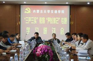 為深入貫徹自治區(qū)黨委組織部《關(guān)于認(rèn)真落實(shí)“四個(gè)一”要求,深入扎實(shí)開展專題學(xué)習(xí)研討的通知》(內(nèi)組通字〔2015〕28號(hào))和《內(nèi)蒙古大學(xué)關(guān)于認(rèn)真做好嚴(yán)以律己專題學(xué)習(xí)研討會(huì)的通知》(內(nèi)大黨組發(fā)〔2015〕11號(hào))的有關(guān)精神,筑牢“三嚴(yán)三實(shí)”思想根基,進(jìn)一步增強(qiáng)全院黨員干部思想和行動(dòng)自覺性,9月15日下午,在交通樓A439會(huì)議室,學(xué)院黨委召開“三嚴(yán)三實(shí)”教育“嚴(yán)以律己”專題學(xué)習(xí)研討會(huì)。