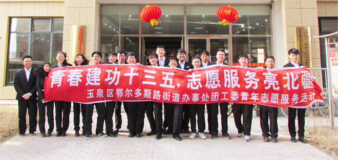 今年的3月5日,是我國第五十三個“雷鋒日”。社團聯(lián)合會的20名委員們代表內(nèi)蒙古大學交通學院自愿、積極地參與了玉泉區(qū)鄂爾多斯路街道辦事處團工委舉辦的“青春建功十三五,志愿服務亮北疆”青年志愿者服務活動。社聯(lián)委員們走進了社區(qū),看望孤寡老人,清潔衛(wèi)生,協(xié)助環(huán)衛(wèi)工人清理道路垃圾,為小區(qū)居民送去了溫暖。