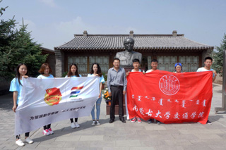 參加“三下鄉(xiāng)”社會實踐活動的學(xué)院大學(xué)生志愿者在烏蘭夫故居前合影 | |