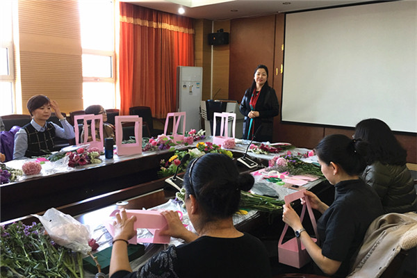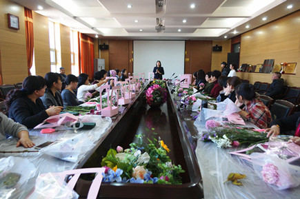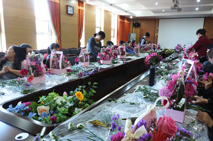 為慶?!叭ぐ恕眿D女節(jié),進(jìn)一步提升女教職工生活藝術(shù)審美情趣,激發(fā)活力、凝聚力、創(chuàng)造力及向心力,3月6日下午,學(xué)院工會(huì)在交通樓A439室組織開展了插花藝術(shù)講座和“詩情花藝、馨香教苑”插花比賽活動(dòng),共有30名女教職工參加。學(xué)院黨委副書記、紀(jì)委書記白托婭代表學(xué)院黨委向全院女教職工致以節(jié)日的祝福。